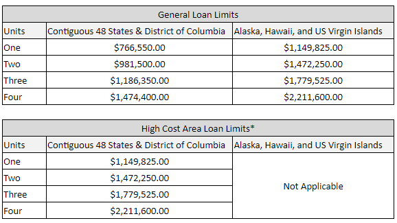 Jumbo Loan Programs exceed the maximum loan amounts established by Fannie Mae and Freddie Mac conventional loan limits. The Federal Housing Finance Agency (FHFA) has published the maximum loan limits effective for loans acquired by Fannie Mae and Freddie Mac in 2024. Both the general and high-cost area loan limits have increased. Loan limits for all counties can be located on the FHFA’s Conforming Loan Limits page.