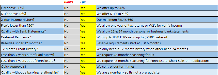 Although the market for Jumbo Loans is thought to be with the traditional banks, you may want to think again, as we can offer more. See our our comparison chart below...